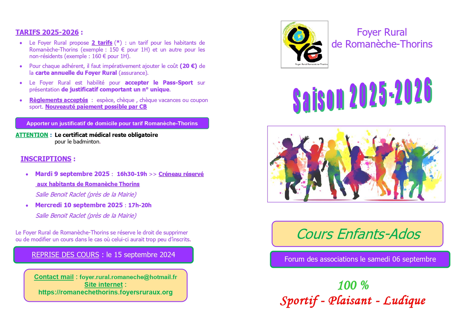 Renseignements: foyer.rural.romaneche@hotmail.com